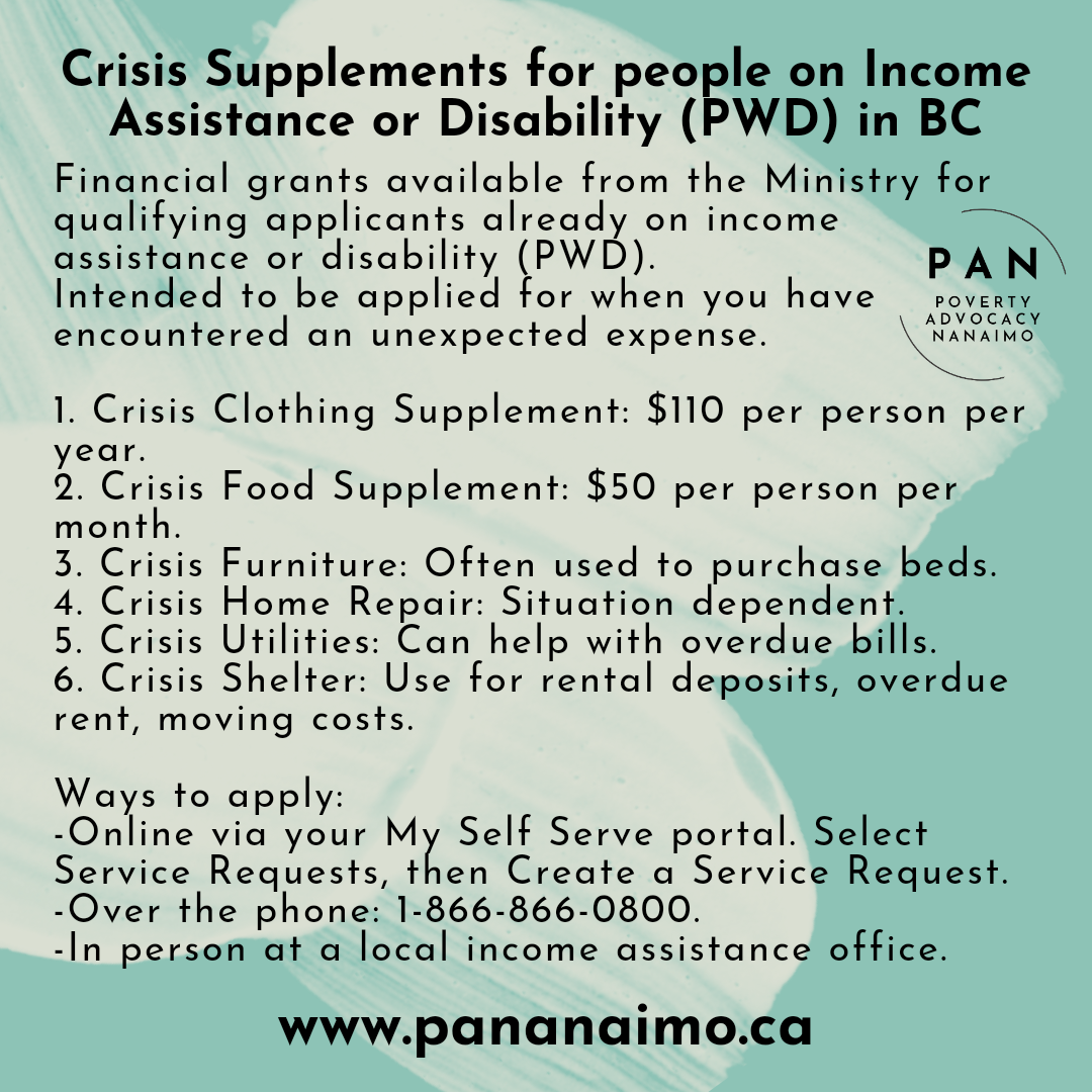 Last week, I applied for a crisis food supplement available through my benefits as a recipient of PWD (Provincial Disability). I thought it might be helpful to other PWD or Income Assistance recipients to share my experience. My son had his annual eye exam with our optometrist.In most cases, when children on the Healthy Kids … Continue reading A real life example of applying for a crisis supplement