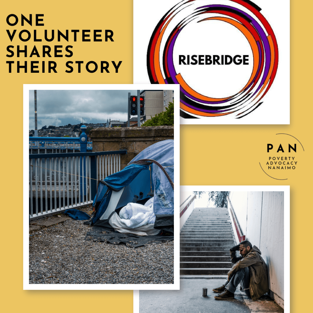 I have been volunteering at Risebridge since November 2023. I have met so many wonderful people. I had wanted to get involved with helping the unhoused for years, but I didn’t know how to go about it. One day, I was on Facebook and saw a post that a friend had shared for this place called Risebridge. The post said they were looking for volunteers, so I contacted them right away. I remember it was a Friday and they answered my message and the following Monday I went down to the centre for the first time and met the director.