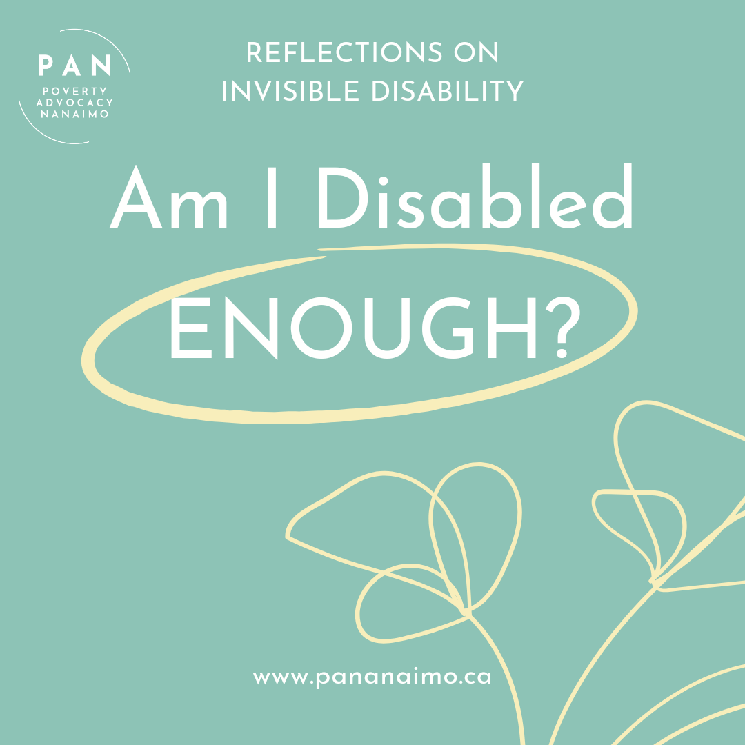 Recently, I have had several kind friends and contacts send me job postings. I have also had one interesting comment on Poverty Advocacy Nanaimo’s social media that if I can do that work, I can get a job and stop draining the public purse by being on Provincial Disability. I think that people see what … Continue reading Am I Disabled Enough?