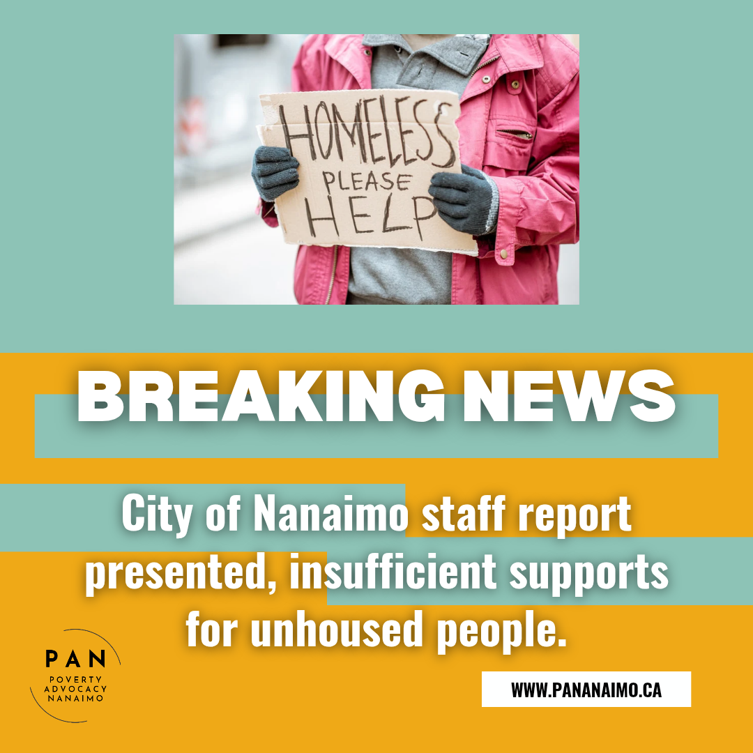 By Sarah Pump, PAN Executive Director “Despite increased demand, access to basic needs services in Nanaimo has declined over the past decade,” says a report from staff at the City of Nanaimo. On May 12th, 2025, City of Nanaimo staff presented a report to the Governance and Priorities Committee about the basic needs of unhoused … Continue reading News that surprised exactly ZERO frontline workers
