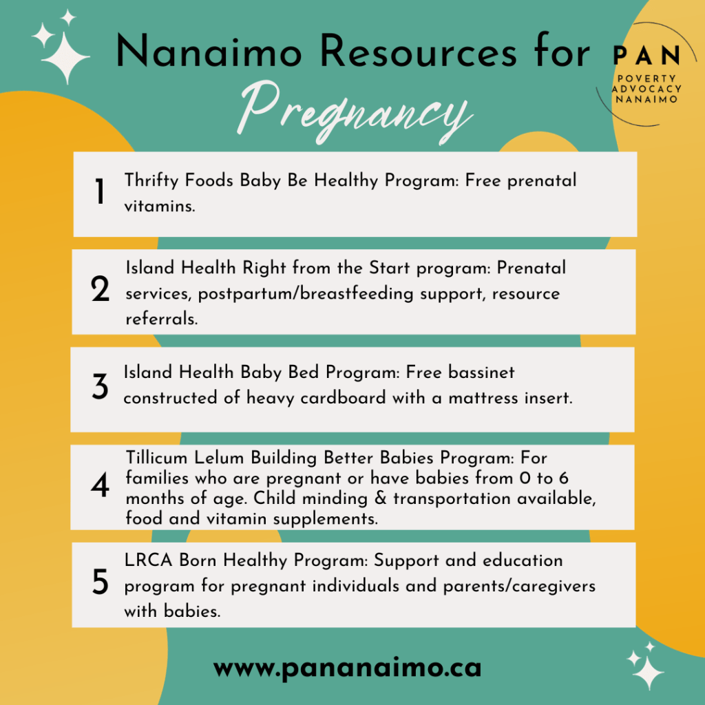 Nanaimo Community Kitchens Bellies to Babies Program: Cooking program for pregnant individuals, first-time parents, and young families.