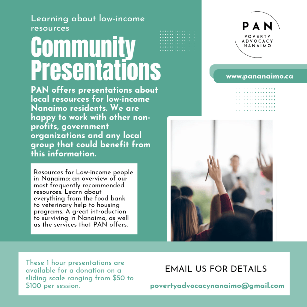 To book a presentation, please email povertyadvocacynanaimo@gmail.com
