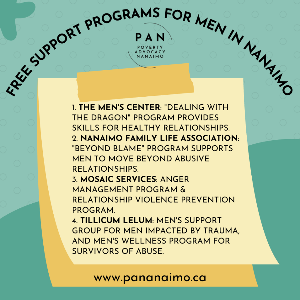Nanaimo Family Life Association Beyond Blame Program: Group that supports men to move beyond abusive behaviours and to build healthy relationships.