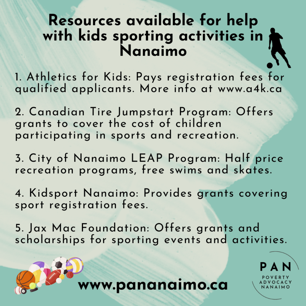 Kidsport Nanaimo: Provides grants to help cover the costs of sport registration fees for kids aged 18 and under.