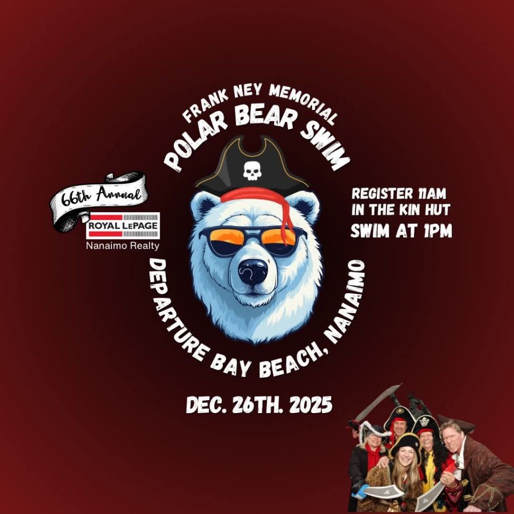 66th Annual Frank Ney Memorial Polar Bear Swim: December 26th at Departure Bay Beach. Registration begins at 11am at the Kin Hut. FREE. Plunge at 1pm. Presented by Royal LePage Nanaimo Realty.
