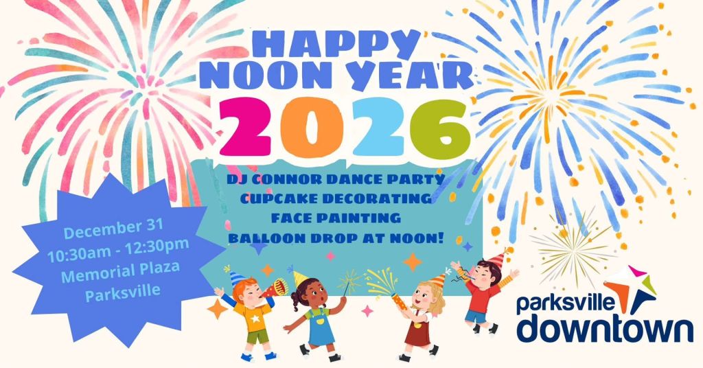 Happy Noon Year 2026 in Parksville: Wednesday December 31st 10:30am to 12:30pm. Special version of a New Year’s celebration for families, kids and everyone who has that New Year’s spirit! DJ dance party, cupcake decorating, and face painting, all at Memorial Plaza in downtown Parksville. Plus a Happy Noon Year countdown and balloon drop at noon!